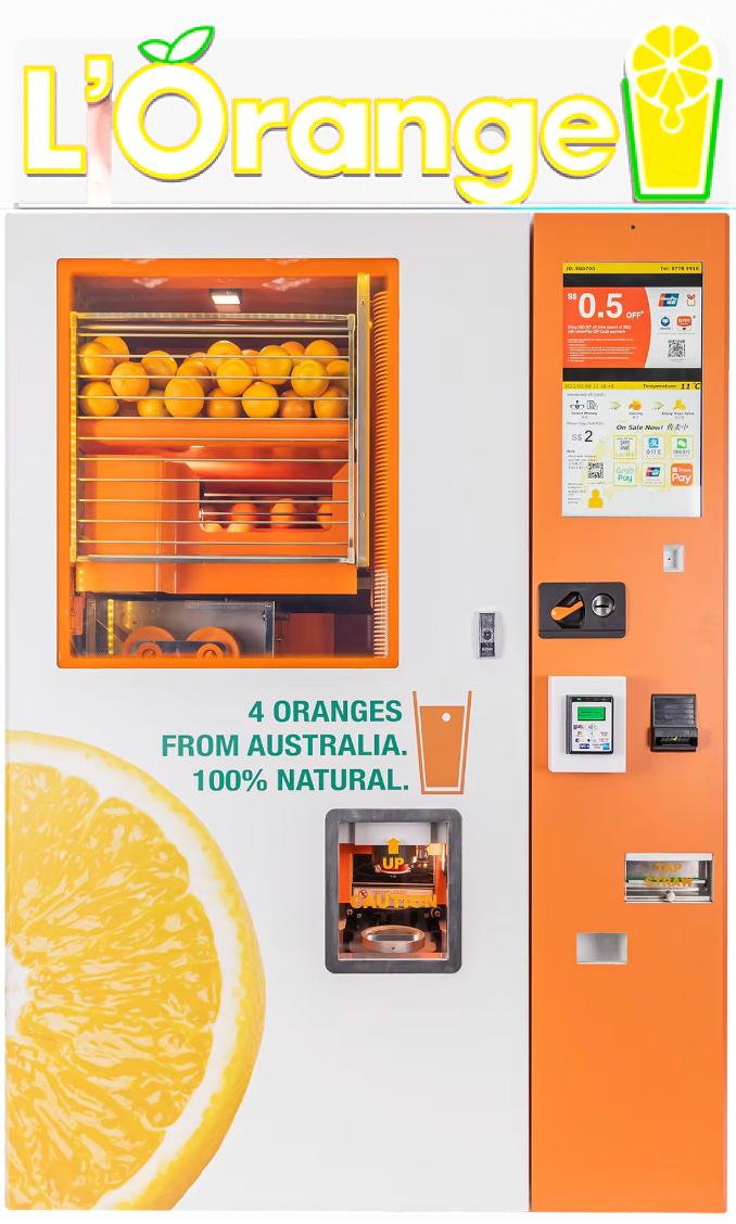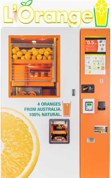 At L'orange, our intelligent vending machines deliver freshly squeezed orange juice with a touch of tech magic.